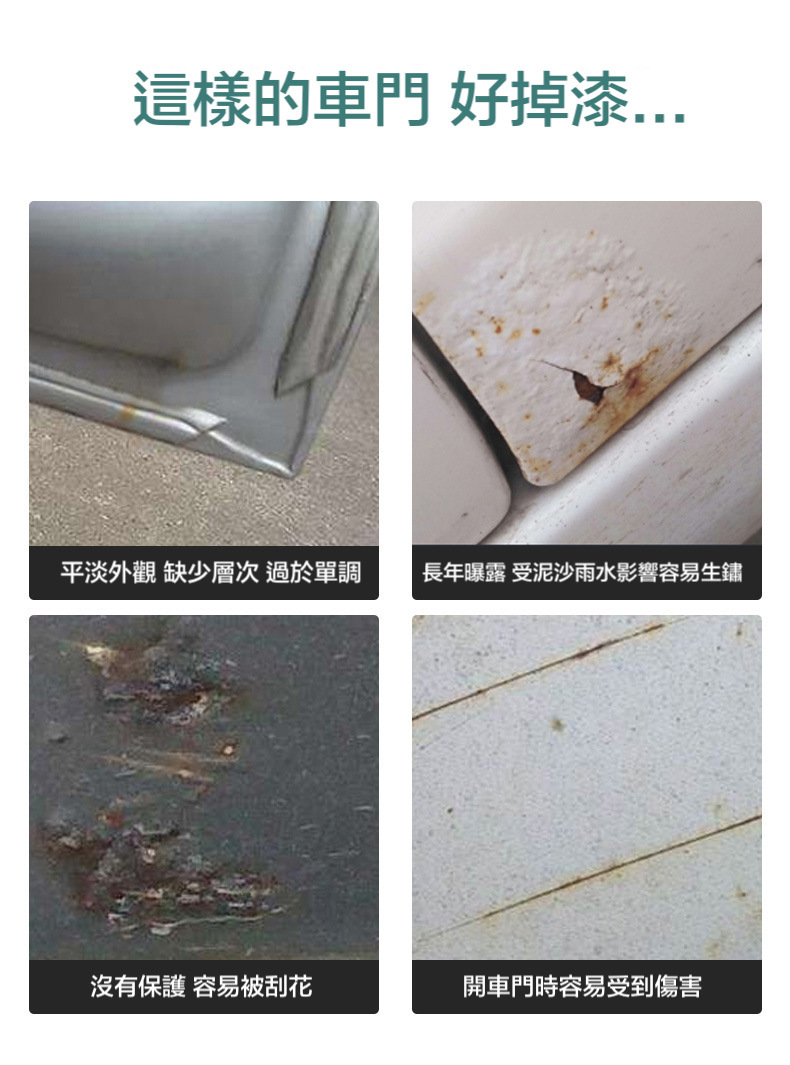 功 能:保護車門角,避免開門時不慎刮傷,碰撞。防止車漆脫落