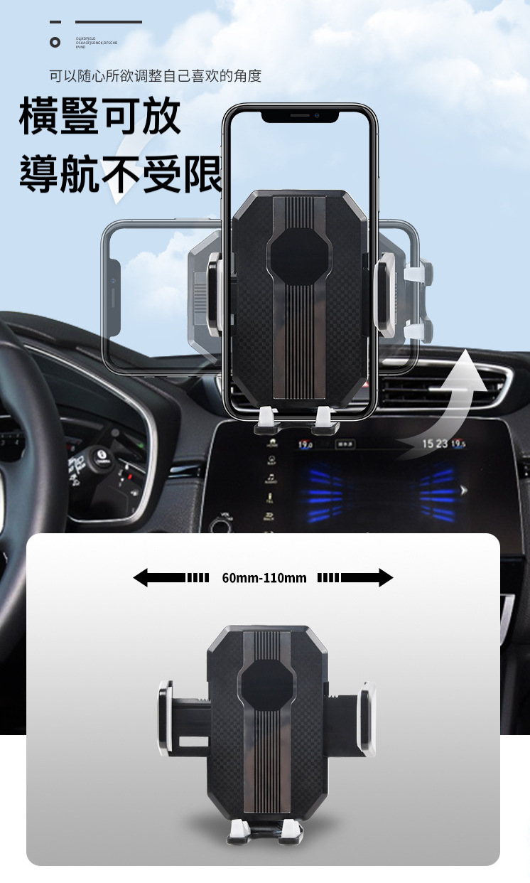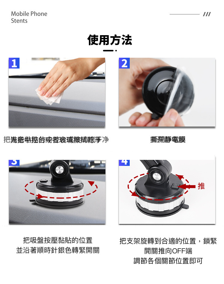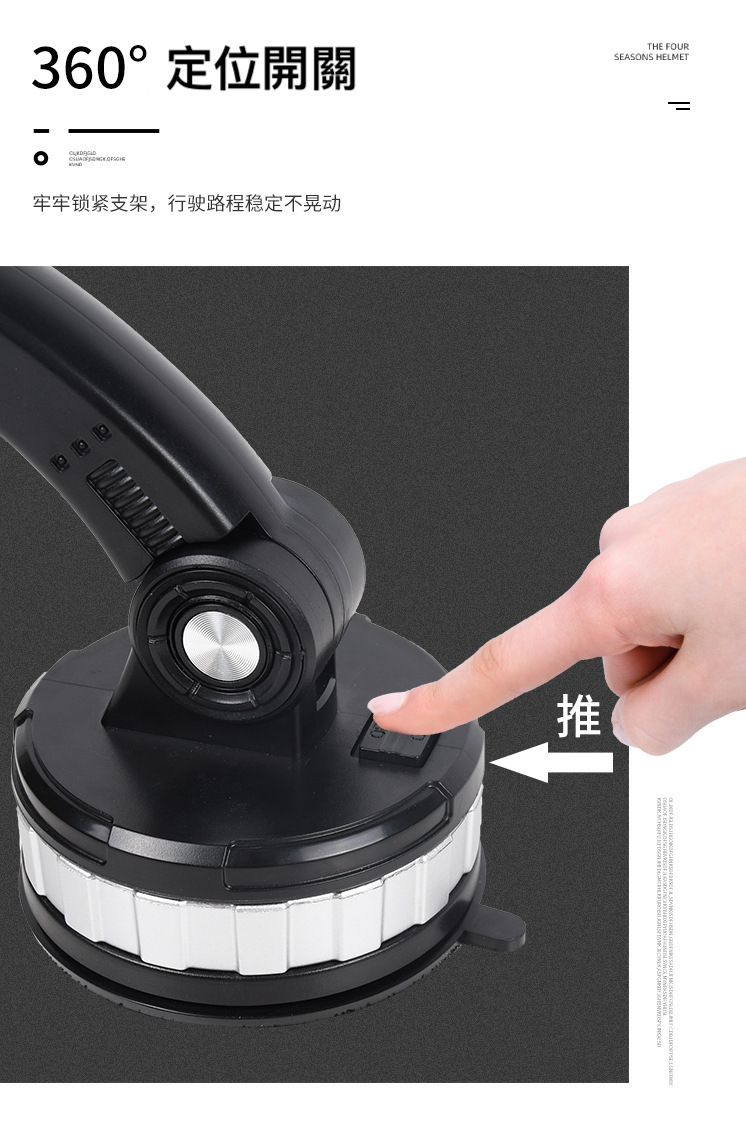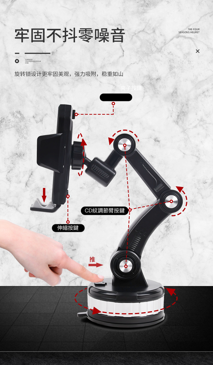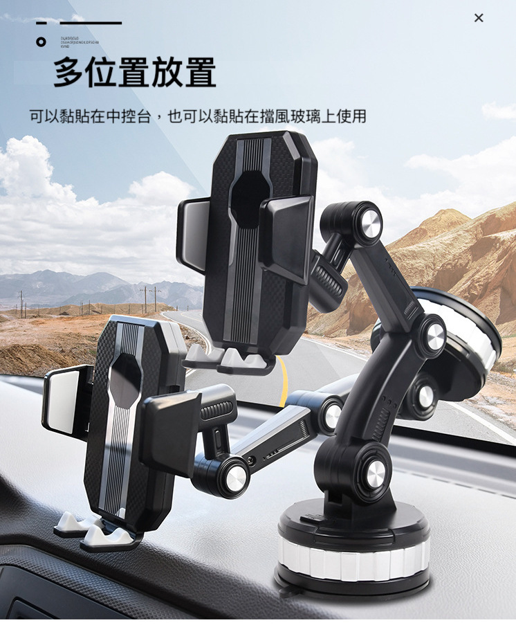 機械式3節調整,大吸盤超穩固支架,可吸附在中控台或者玻璃上,不遮擋駕駛視線