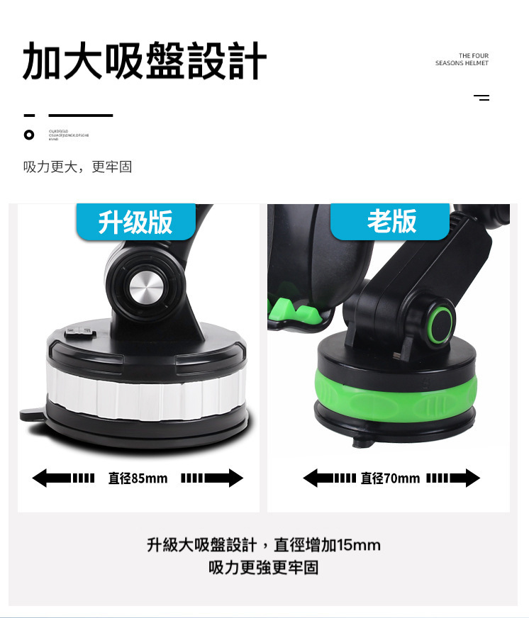 超大面積吸盤,吸附力強勁不易掉落,顛坡路段也不脫落