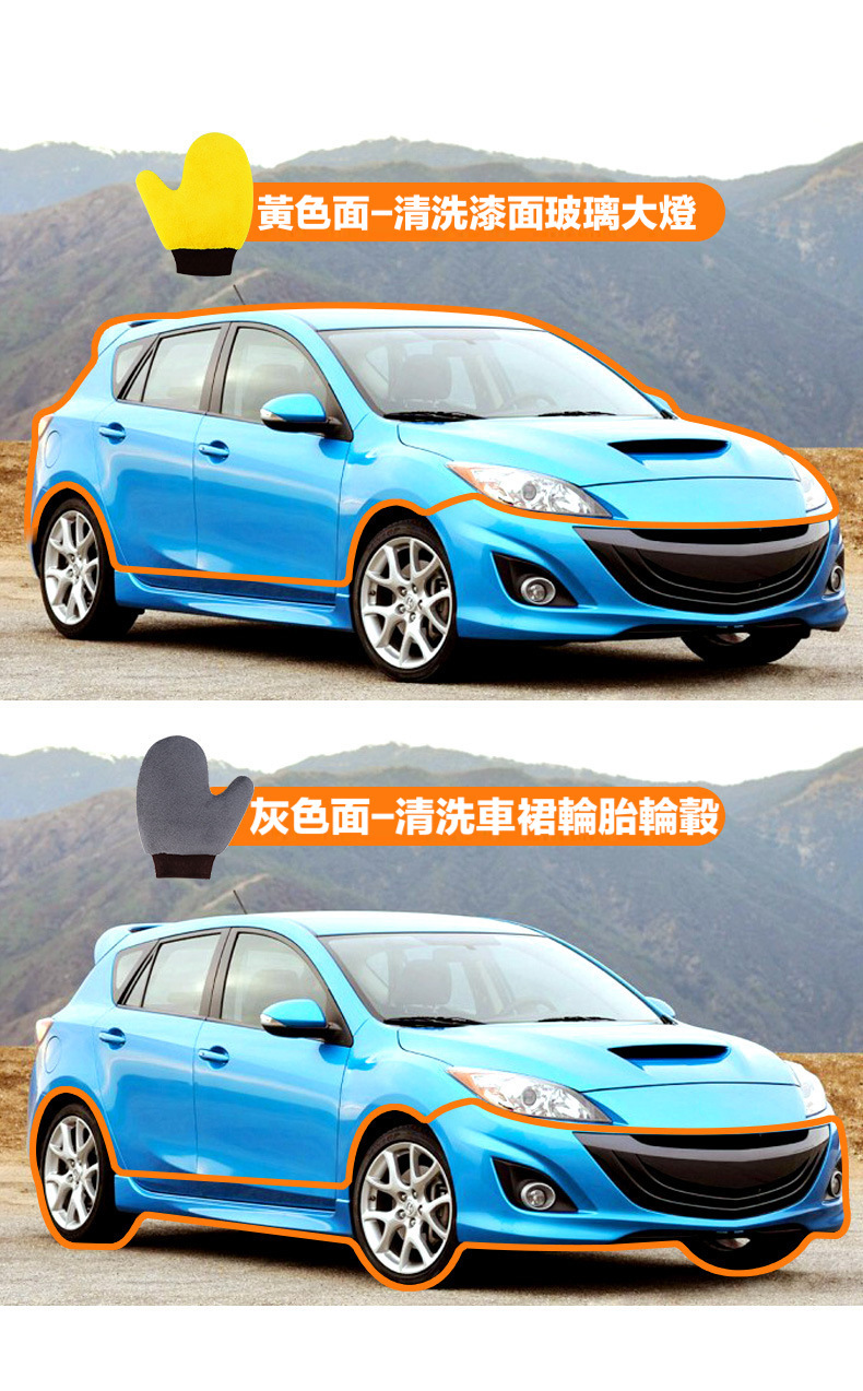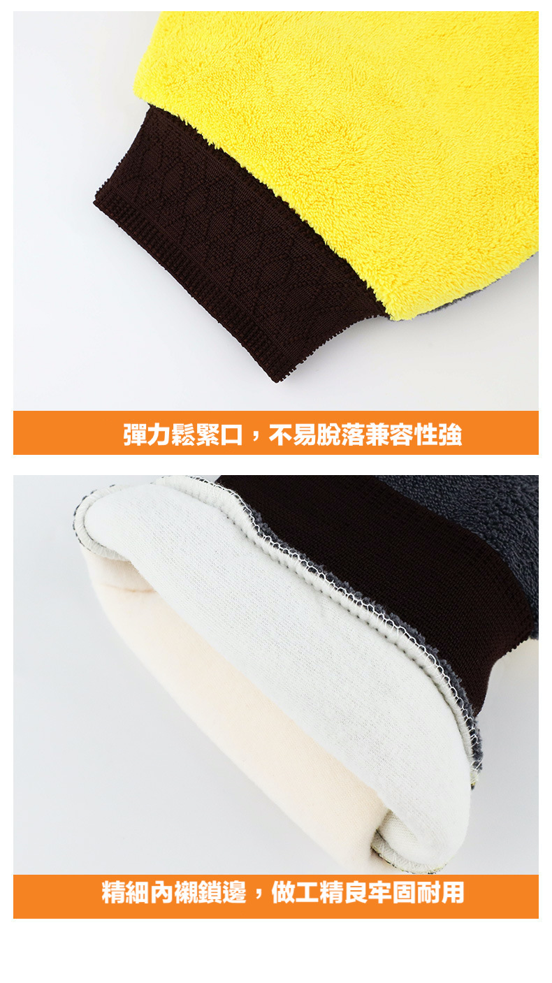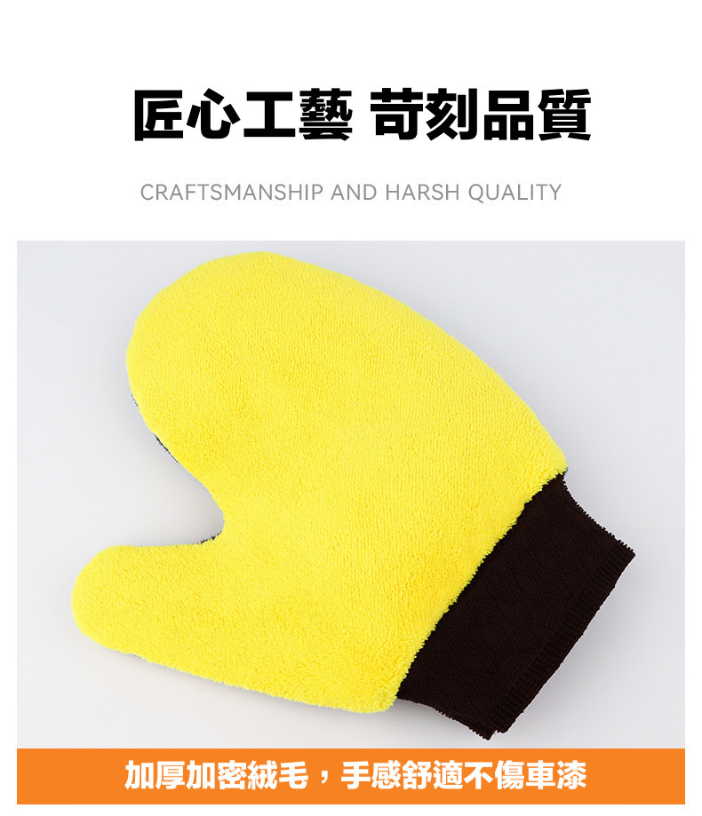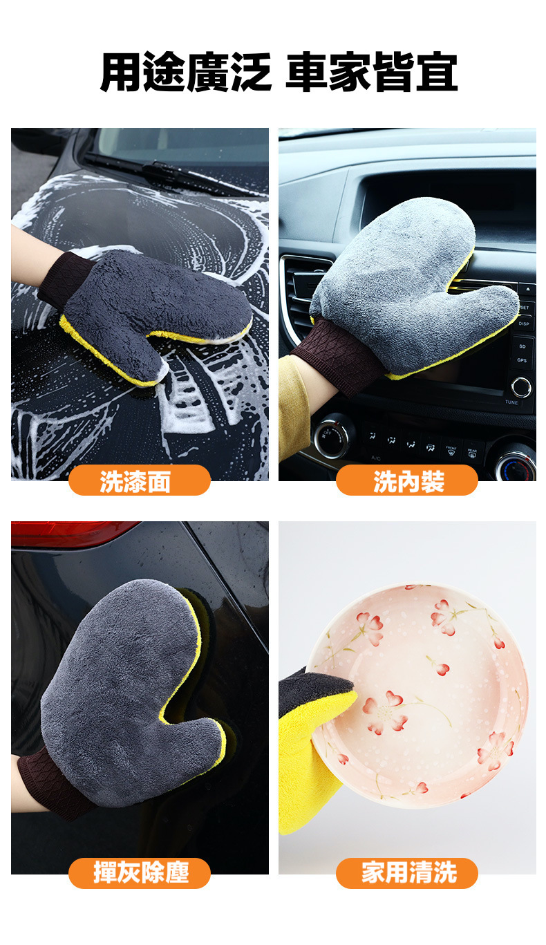 雙面絨洗車手套具有高密度絨毛,可以更好地清潔車輛表面的污垢和灰塵,同時避免刮花車漆。其柔軟的絨毛能夠輕輕地拭去車漆表面的污垢,同時不會對車漆造成任何損傷。而另一面則是較為平滑的絨面,可以用來拋光車漆表面,讓您的愛車閃耀如新。