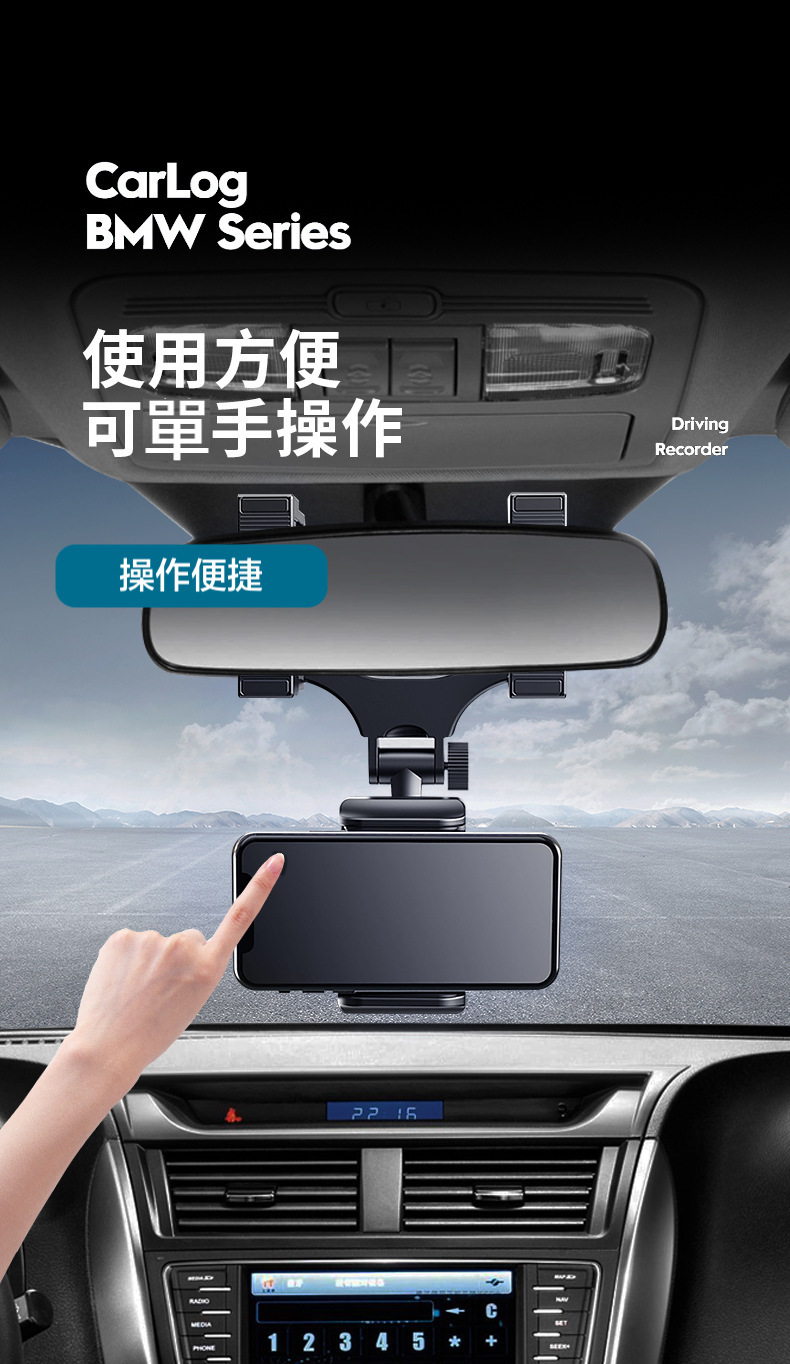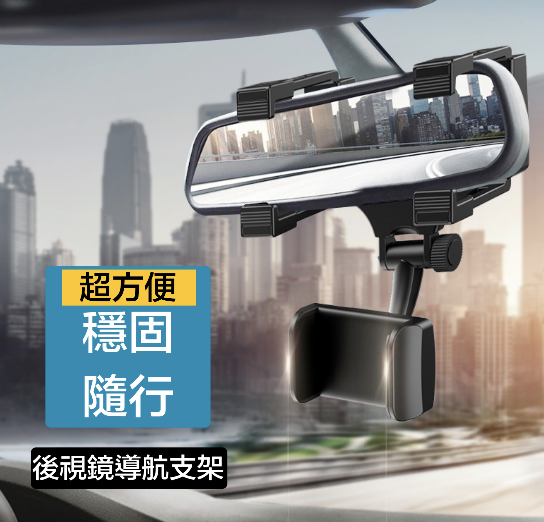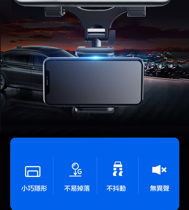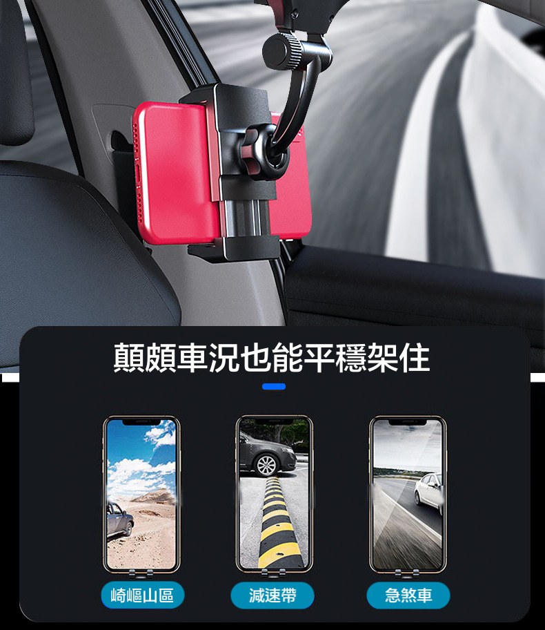 超穩固的支架,直接放在後視鏡上面,不遮擋駕駛視線