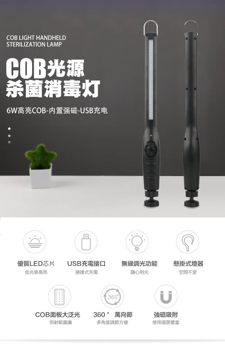 【手持式紫外線消毒燈】COB LED紫外線消毒棒/快速殺菌 手持攜帶式殺菌燈 紫外線消毒燈 ~20秒殺菌,99.9%殺菌率