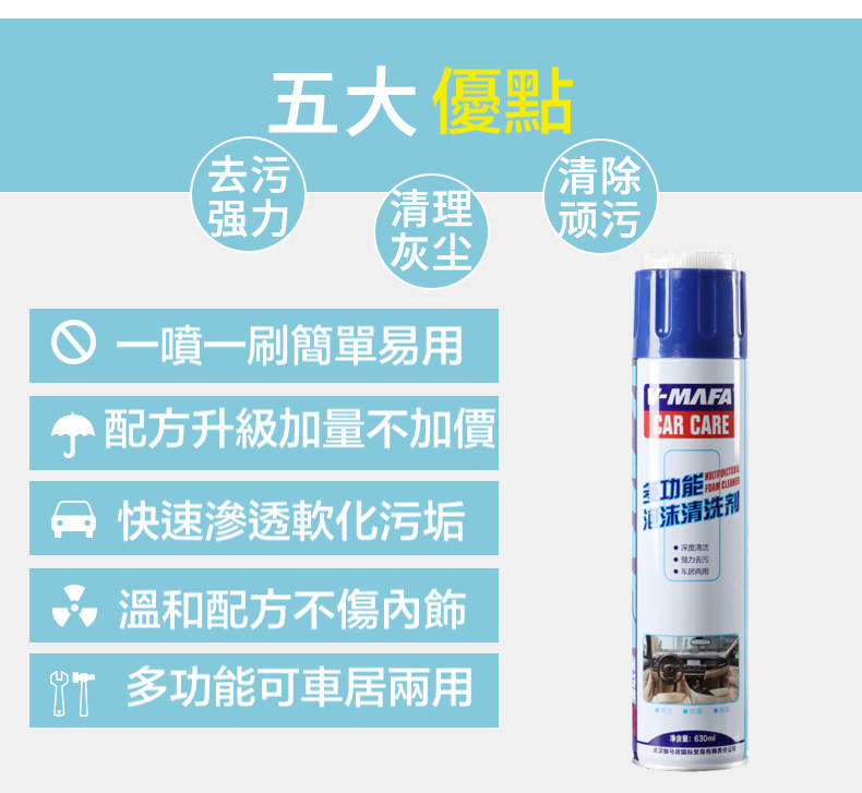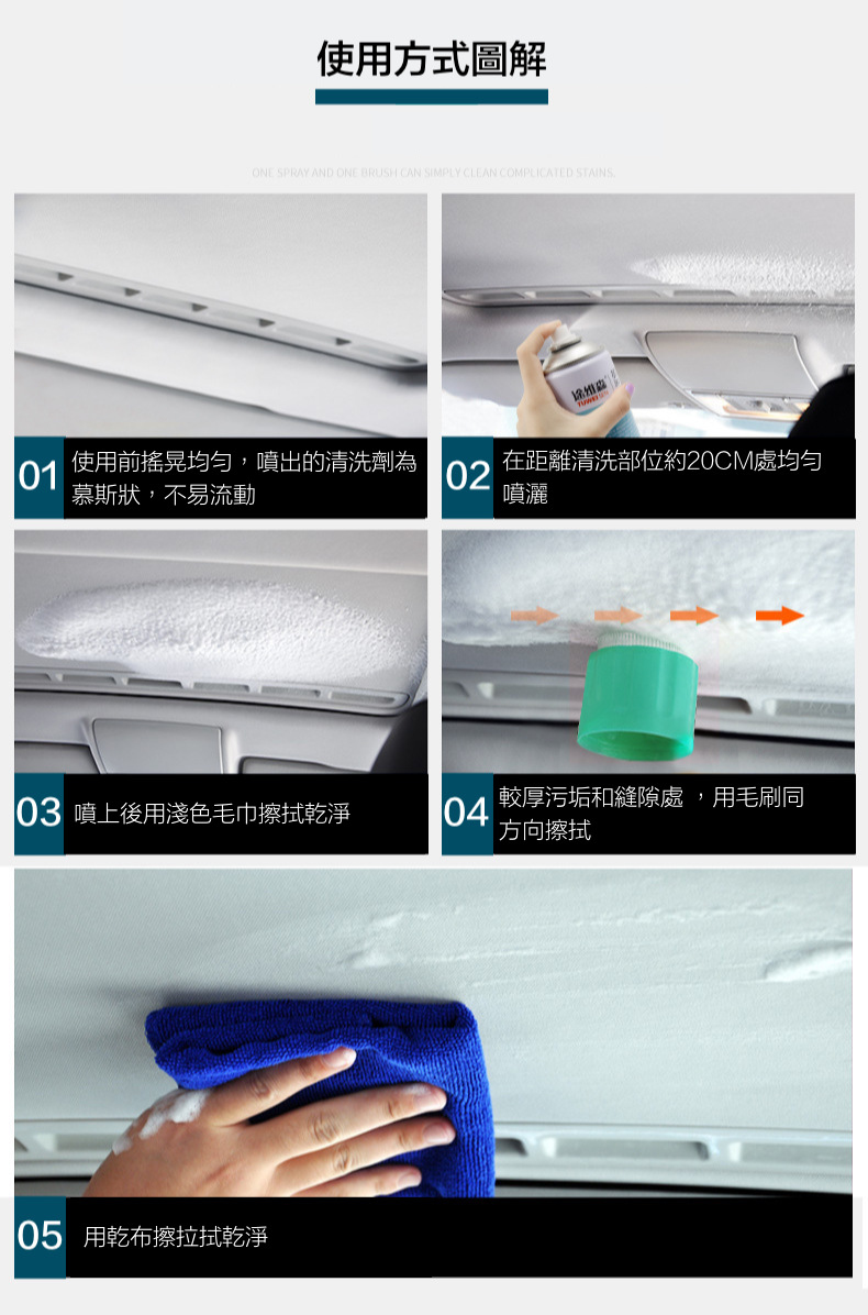 多功能泡泡慕斯清潔劑『車內清潔慕斯』一噴一擦清潔溜溜 650ml