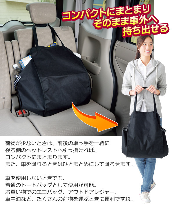 外出等等,有大量物品的時候,使用這個置物袋超方便,可以直接掛在後座椅背上,要拿取的時候就直接當成手提袋