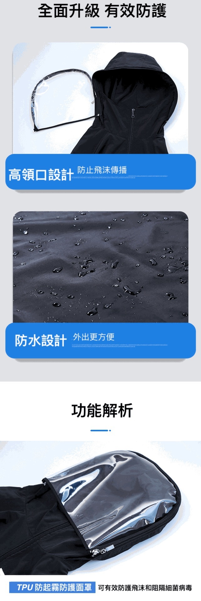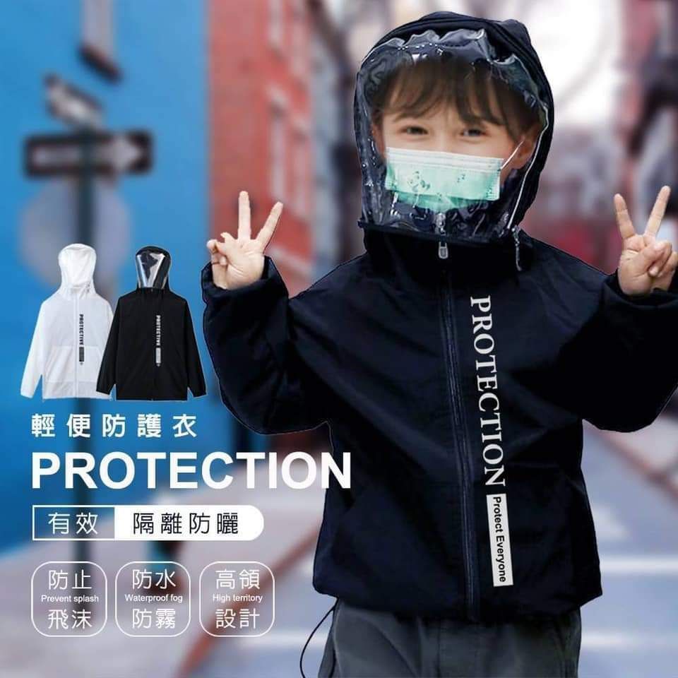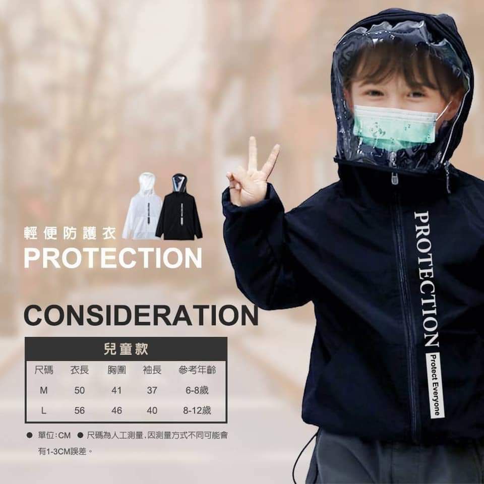 面罩防護衣【防飛沫、防水防風、高領】黑 / 白 可選
