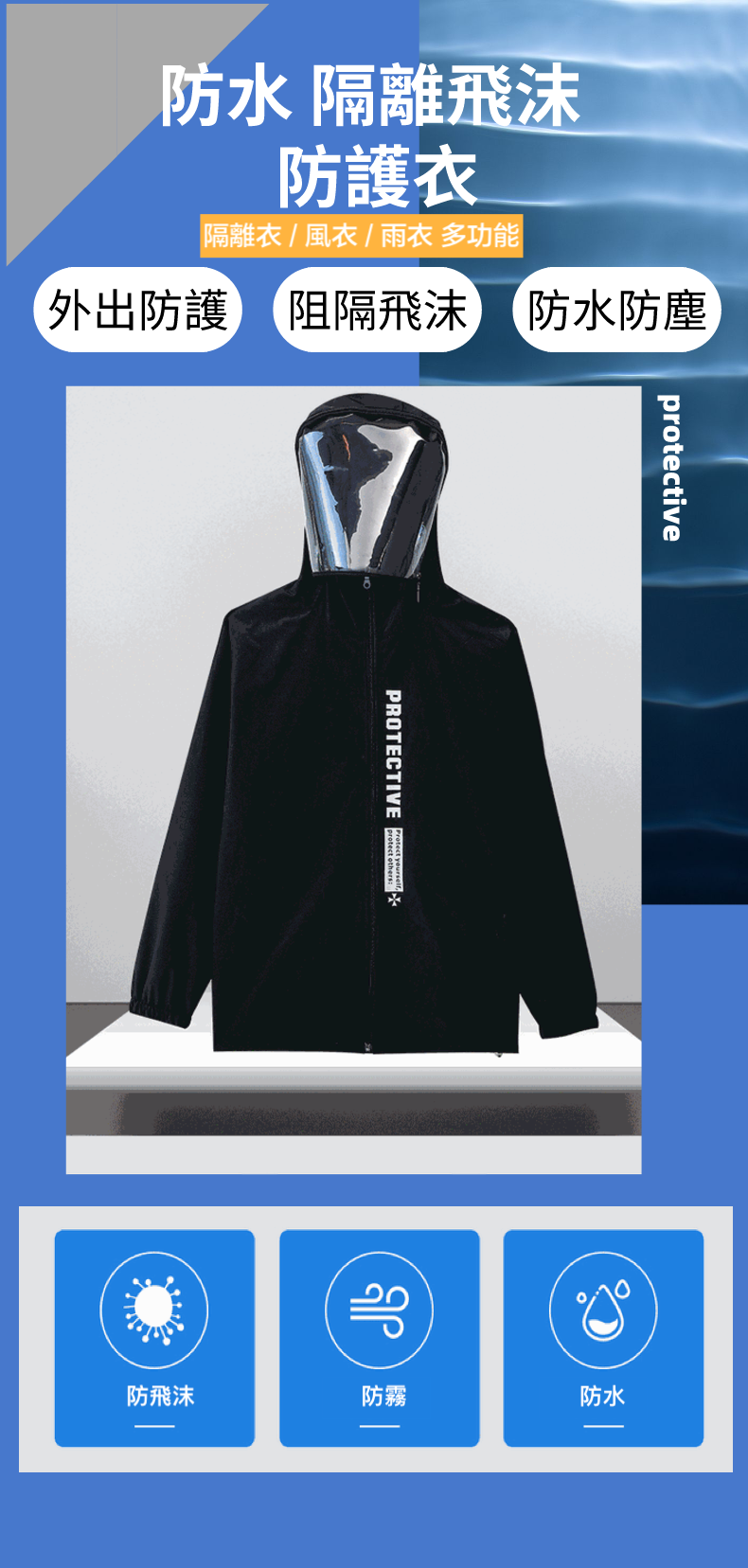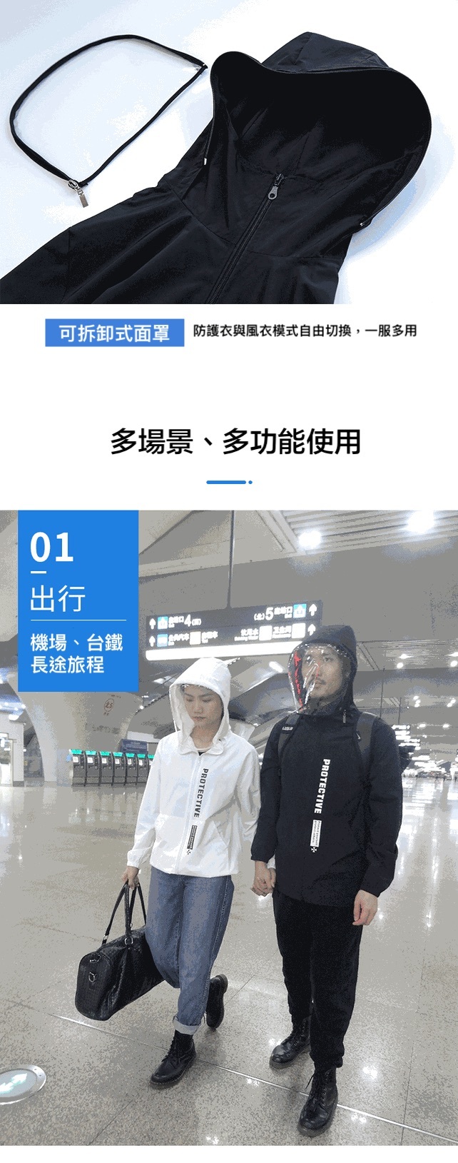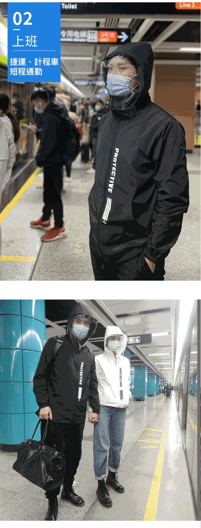 面罩防護衣【防飛沫、防水防風、高領】黑 / 白 可選